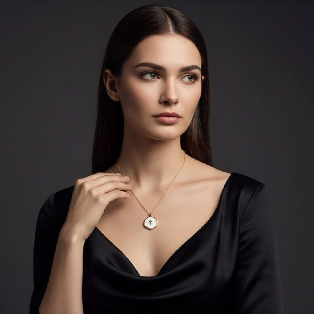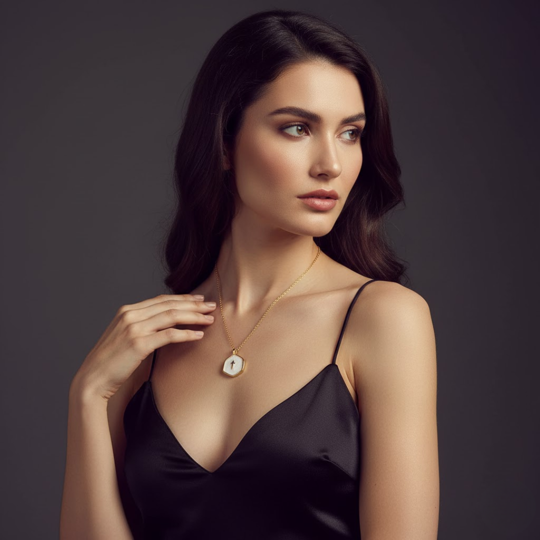 The Anchor of Faith Necklace is a symbol of unshakable trust in God’s promises — a simple cross shining from a sea of white, like light through the storm.