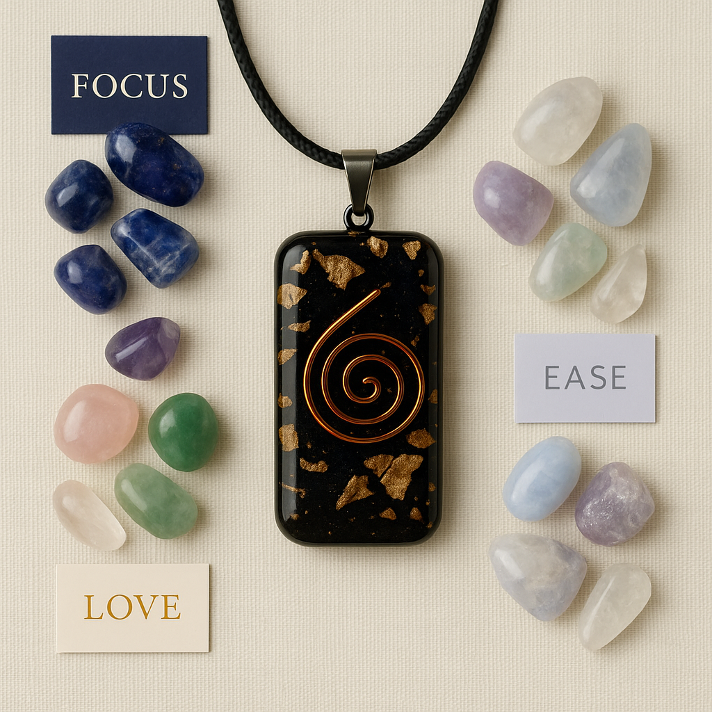 From fiery confidence to watery compassion, this orgonite pendant brings you back into energetic flow—no matter what element or emotion you’re feeling.