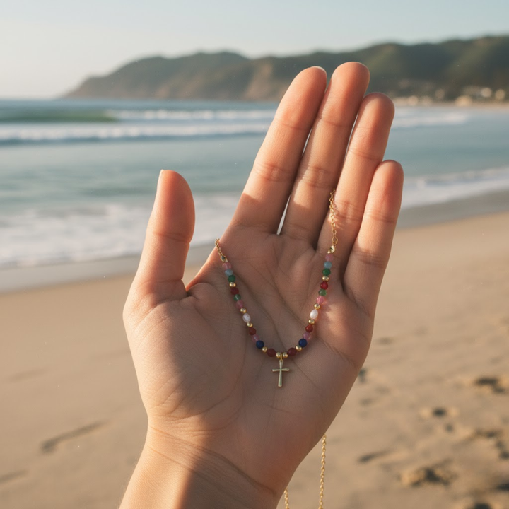 Inspired by faith but styled for real life, it layers beautifully or stands confidently on its own.