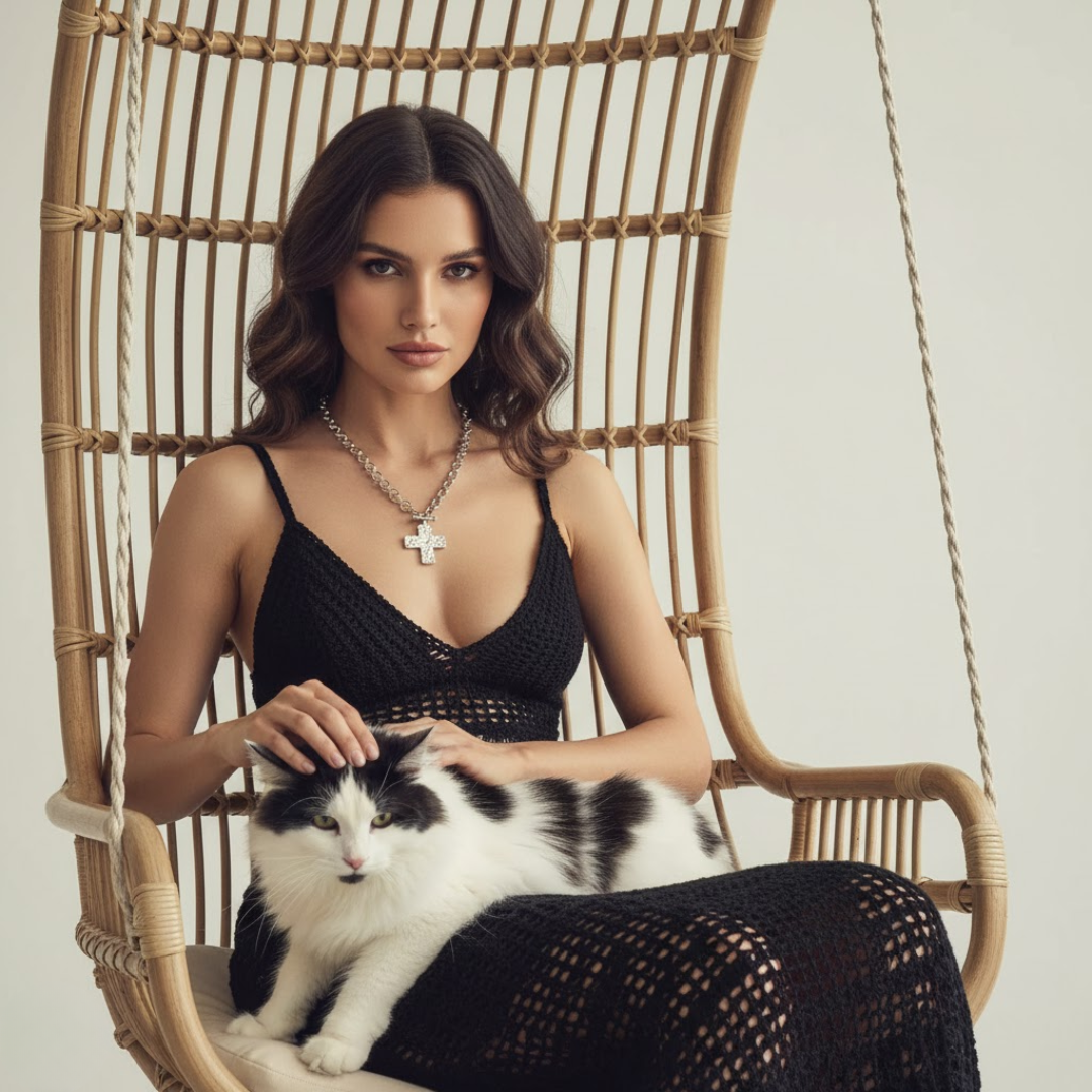Perfect for layering or wearing solo, it’s the kind of piece that feels just right for every season, a subtle reflection of inner peace and modern grace.